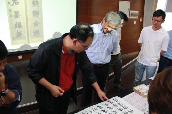 在随后的“喜迎新中国成立70周年华诞书画交流会”上,伟德国际1946周钟鸣老师为师生们普及了中国书画常识。周老师从用笔、用墨、构图以及意境四个方面分享了中国画的品鉴技巧,同时以山水、人物、花鸟、果蔬等不同题材的中国画为例,向大家阐述了中国画从题材、笔墨、结构、意境方面都遵循“高(高洁、高尚)、大(大气、正气)、上(至尊、至雅)”原则。周老师强调,中国画不是一门纯粹的绘画艺术,而是通过笔墨描述意象表达认知和情感。在书法品鉴环节,周老师以不同风格的名家作品为例,通过点画线的强弱、浓淡、粗细等丰富变化,向大家展示了中国文字的变化微妙、形态不一、意趣迥异。