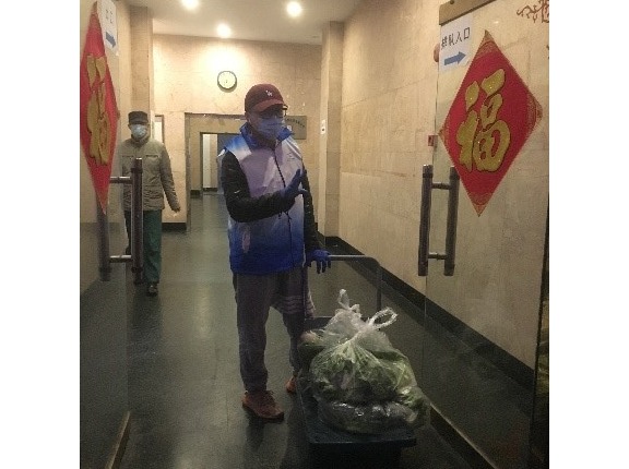 我是“代理采购员”:志愿者上岗的第一件事是排查小区居民情况,为行动不便老人提供小区封闭前的食品采购服务,3月30日这天我跑遍了虹口区附近的菜场和超市,未能为小区居民采购到所需的蔬菜和食品。31日一早我索性驱车到青浦徐泾镇搜寻菜场,很幸运徐泾镇的菜场物质比较丰富,但市场十分拥挤,我采购了一大批肉类和蔬菜,回到城里分发给行动不便的老人,他们由衷的感谢,让我感受作为志愿者的自豪感。