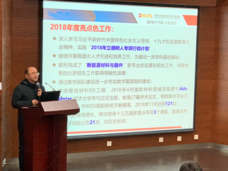 黄云辉经理作2018年公司工作报告。黄经理回顾了2018年公司的特色工作,然后分别从公司的团队和人才工作、人才培养和教学、科研与平台、实验室工作和安全、员工工作、财务决算六个方面全面汇报了2018年度公司取得的主要工作成绩。系统总结了事业健康快速发展的成功经验,深刻分析了公司进一步发展面临的形势、特别是国家“双一流”建设带来的重大机遇和挑战,明确提出和部署了2019年公司改革发展的工作思路和重点工作任务。王中平书记作公司财务情况报告,汇报了2018年财务预算执行情况。