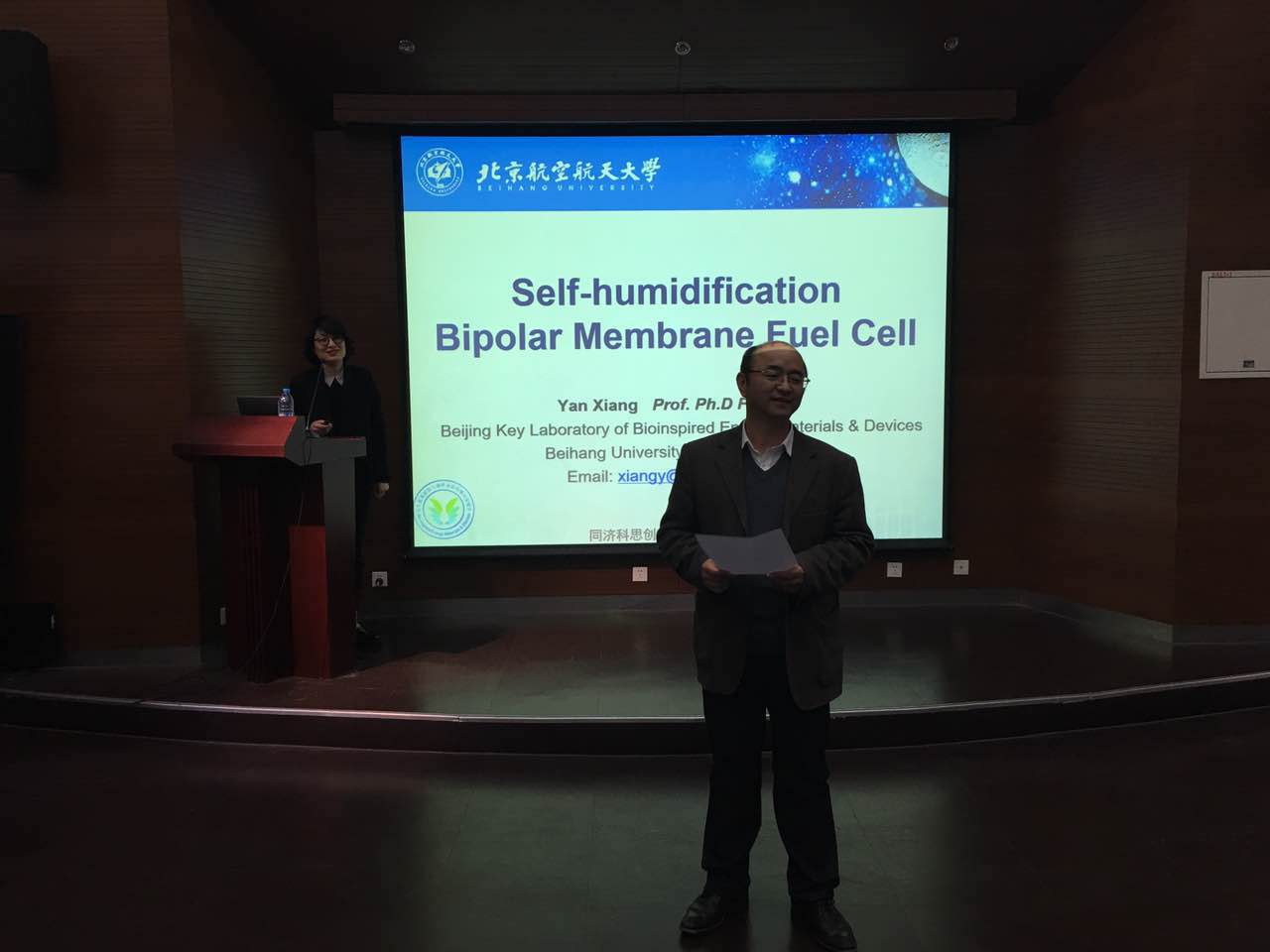 下午2时许,在伟德国际1946嘉定校区德才馆(伟德国际1946)二楼报告厅,黄云辉教授主持了由相艳博士主讲的同济科思创杰出学者讲坛。相艳博士做了题为“自润湿双极膜燃料电池界面行为研究”的学术报告,就双极膜燃料电池的膜材料、界面原理和器件等几个方面做了详细介绍,并与在场的师生进行了热烈的交流与讨论。