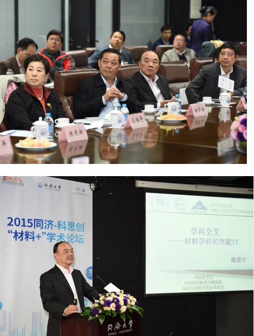 论坛上,姚建年院士围绕学科交叉的必然性和重要性、材料学天然的交叉性和国内外交叉学科的发展情况,对我国当代高校材料学科的交叉发展提出了倡导和展望,期待我们的原创性研究工作有所突破;高瑞平副主任则通过展示我国基础研究发展的状况、未来优先发展领域等,对科学基金是三五发展战略提出了几点思考和建议;陈其针处长从其所在的科技部高新司材料处在材料领域的科技工作近况出发,介绍了国家科技计划改革情况进展和国家重点研发专项部署重点,希望未来同济科研工作者们把握“十三五”战略发展机遇,为材料领域的学术和科研发展作出更大贡献。10余位来自德国科思创公司、同济科研院、各大工程类学科院系的材料领域的教师和科研人员们就材料在他们各自研究领域中的交叉融合和应用进行了介绍和交流,并与参会嘉宾们进一步就材料学科未来创新发展理念、及如何推动伟德国际1946工程类学科的交叉发展和资源共享进行了交流和互动。