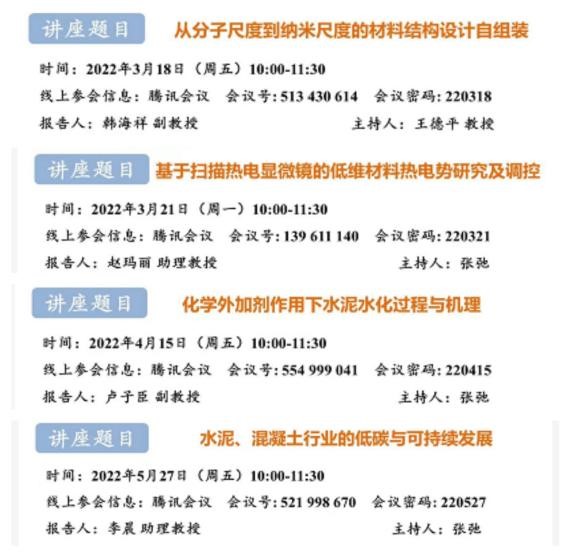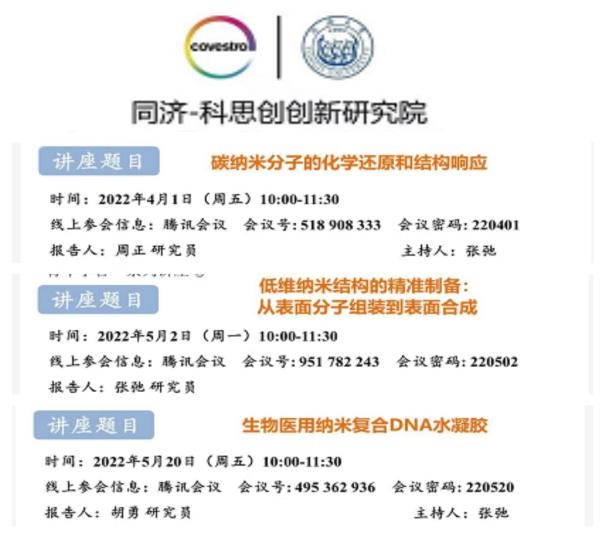校园准封闭管理下,教学由线下改为线上,原定线下举办的学术交流讲座也移至云端。为了保障准封闭管理期间同学们的“精神食粮”不断供,公司推出了系列同济-科思创“杰出学者”和“青年学者”系列讲座。疫情期间,共邀请杰出学者6名、青年学者7名,开展了13场学术报告,内容涵盖了新型能源材料、碳基纳米材料、生物医用材料、低碳绿色建筑材料等公司重点发展的科研方向,为同学们送上了别具特色的“学术大餐”。截至5月底,系列讲座吸引2000余人次聆听学习,帮助同学们了解学科前延,拓展科研思路。讲座中,各位学者和青年人才也分享了自己海外求学、归国科研的经历,让材料学子对时代赋予的“新材料人的使命”有了更深刻的认识,在科研报国的时代使命中厚植家国情怀。