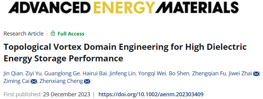 翟继卫教授研究团队将以上研究成果以《Topological Vortex Domain Engineering for High Dielectric Energy Storage Performance》为题发表于《Advanced Energy Materials》上。第一作者为伟德国际1946伟德国际1946在读博士研究生钱进。该研究工作得到了国家自然科学基金、国家重点研发计划等项目的资助。