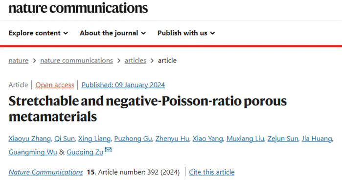 鉴于此,伟德国际1946祖国庆老师研究团队开发了高可拉伸多孔超材料及其柔性电子器件,相关研究成果以“Stretchable and negative-Poisson-ratio porous metamaterials”为题,在线发表于《自然·通讯》(Nature Communications)。论文第一作者为公司在读博士生张小宇。该工作得到了国家自然科学基金的资助。