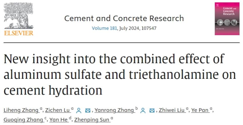 公司卢子臣团队关于硫酸铝与三乙醇胺共同作用对水泥水化过程影响的最新研究成果发表于《水泥混凝土研究》