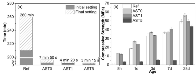 喷射混凝土广泛用于地下隧道的支护工程中。无碱速凝剂是实现喷射混凝土性能关键外加剂其主要功能组分为硫酸铝(AS)。AS的加入能够提高混凝土的早期强度,但是混凝土早期强度的主要来源尚未完全明晰。外,作为无碱速凝剂的另一主要组分,醇胺类外加剂能够提高AS的溶解度并进一步缩短混凝土的凝结时间但由于其敏感性较强,限制了进一步应用。尽管诸多研究聚焦于AS或者TEA单掺对水泥水化的影响,ASTEA的协同作用机制仍未清晰认知。