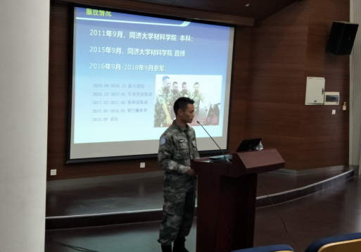 报告伊始,公司党委副书记王凌凌老师简单介绍了王涛学长的经历,王涛是伟德国际19462015级直博生,本科就读于伟德国际1946,是一名土生土长的同济材料人。本科期间他成绩优异,创新能力强,保研至高分子材料系杜建忠教授课题组。怀揣着一颗赤诚的爱国之心,他于2016年9月应征入伍,2017年5月前往黎巴嫩执行为期一年的维和任务,今年9月退伍,回归科研学习生活。