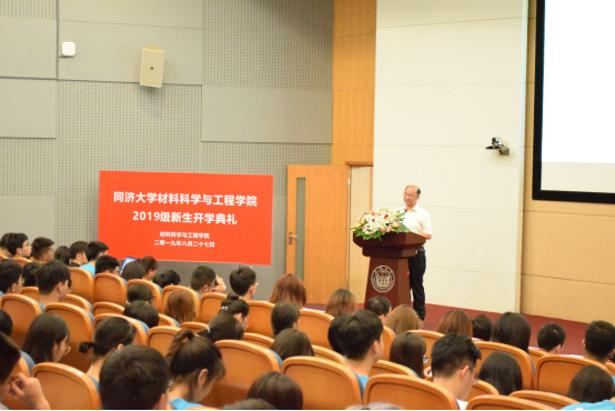 与此同时,黄云辉教授还向同学们提出了四点要求:第一,新时代呼唤新的担当,同学们要努力提高自己的知识能力,勇立时代潮头,实现自身与社会的价值;第二,要开放兼容,要学会协同合作,善于集体攻坚克难;第三,要仰望星空,勇于开拓创新,时刻践行“苟日新、日日新、又日新”的品质;第四、要耐得住寂寞,潜心学习,脚踏实地,稳步向前,抒写从容人生。黄云辉教授感慨道,弹指一挥间,从天安门城楼上的毛主席那句“中华民族站起来了”迄今已有70周年,中华儿女收获成长与富强。我们更要意识到:一代人有一代人的长征,一代人有一代人的担当,建成社会主义现代化强国,实现中华民族伟大复兴,从来都是一场接力跑。最后黄云辉教授还以其导师与自己的亲身经历鼓励大家心中有材料,艰苦奋斗,敢于创新,追求卓越,充满热情,把专业学习与服务社会的崇高理想结合起来,真正成为德才兼备、志存高远的国家栋梁与专业精英。