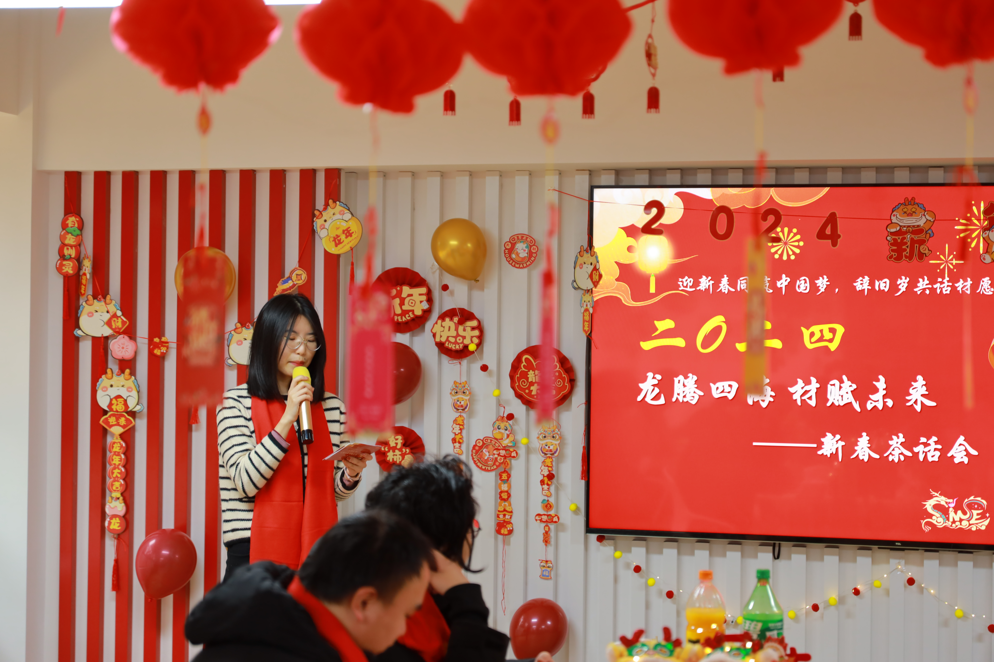 2月1日上午11时,公司于一站式社区服务中心举行“迎新春同筑中国梦,辞旧岁共话材愿情”寒假留校学子新春茶话会活动。公司党委书记杨晓杰老师、经理许维老师、党委副书记梁春江老师以及员工工作办公室老师代表们共同出席,本次茶话会由2022级博士研究生陈钰婷(青储2.0辅导员)主持。