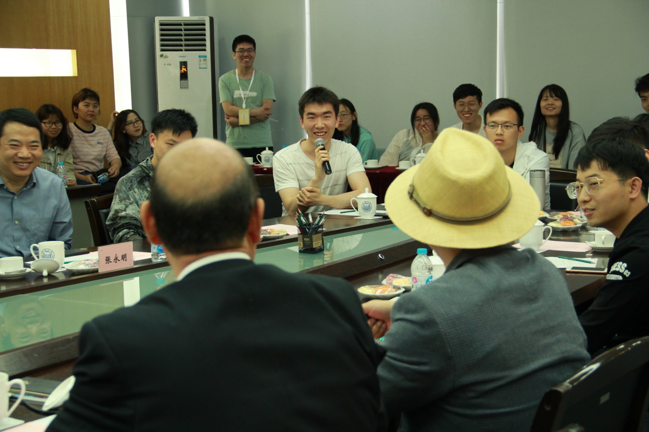 博士研究生员工代表朱新平向学长请教:如何在平衡好海螺集团的企业责任和社会责任的前提下,推动LC3等新型低碳胶凝材料在国内的产业化应用。学长谈到海螺集团作为龙头企业,始终把水泥的质量放在首要位置,保证工程建设的安全性,目前集团仍以生产普通硅酸盐水泥为主,学长鼓励同学们进一步研究这类新材料。
