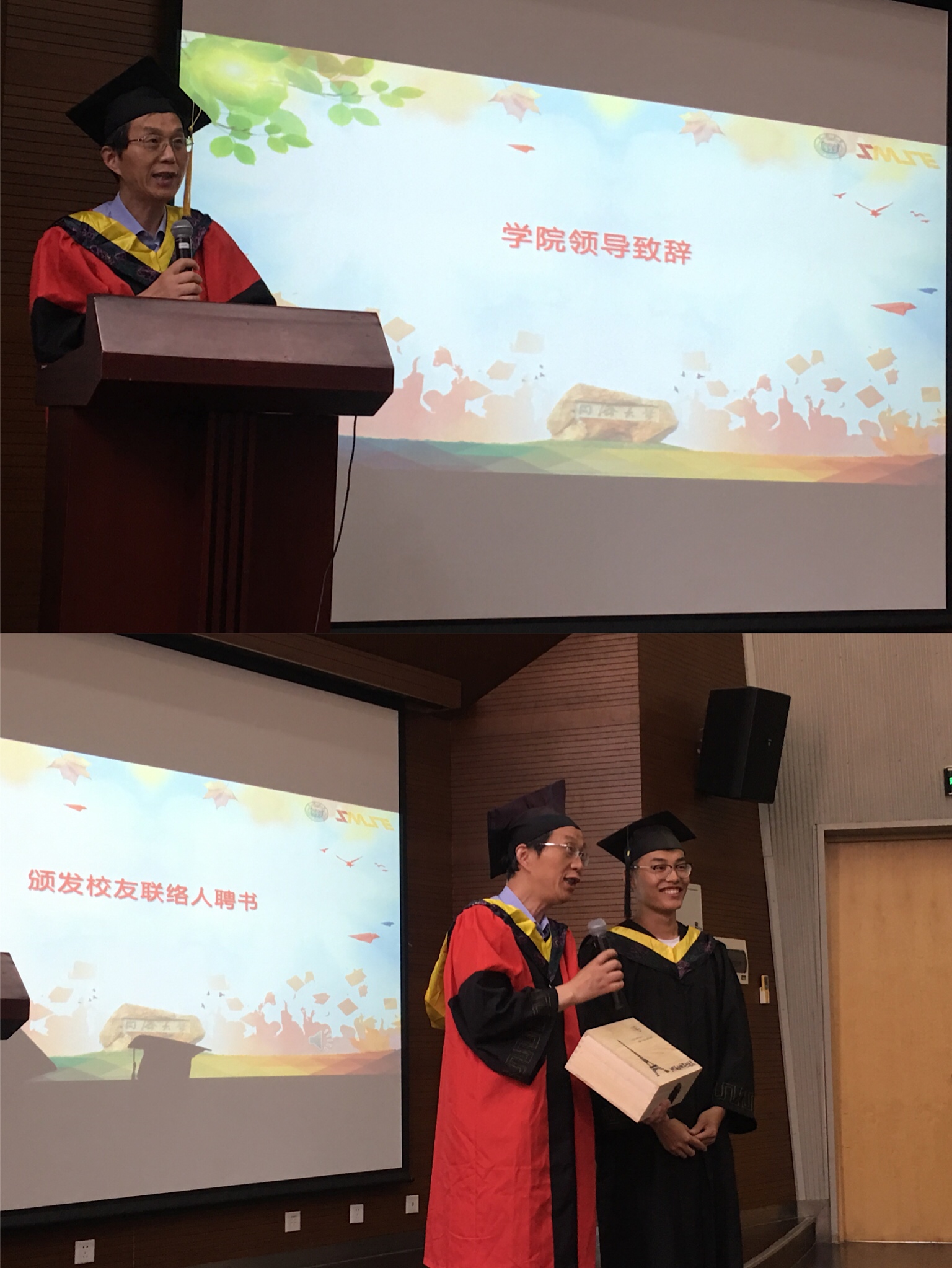 随后,教师代表任天斌老师讲话。他为同学们四年来的成长感到欣喜,勉励同学们:材料人要有材料的思维,材料人的理念和材料人的担当。材料的性能是由材料的微观结构决定的,只有研究透他的微观组成才能全面把握材料的特性。同样的,材料人要学会研究问题的本质,从最基础的地方把握问题,才能在未来的学习工作中解决问题。材料人还要有胸怀天下的理念和担当,努力为国家的发展做出自己的贡献。