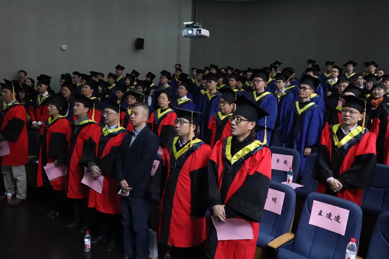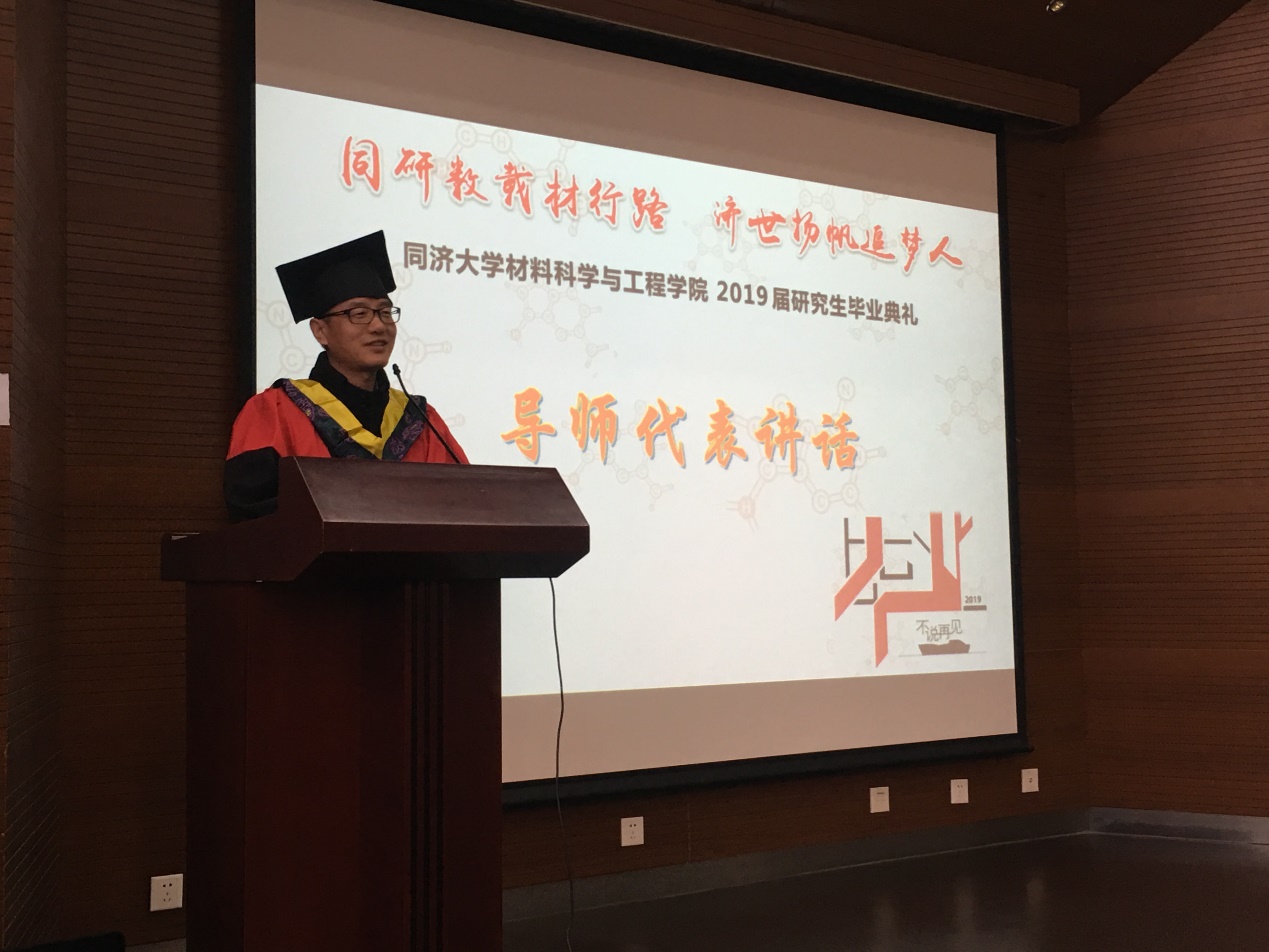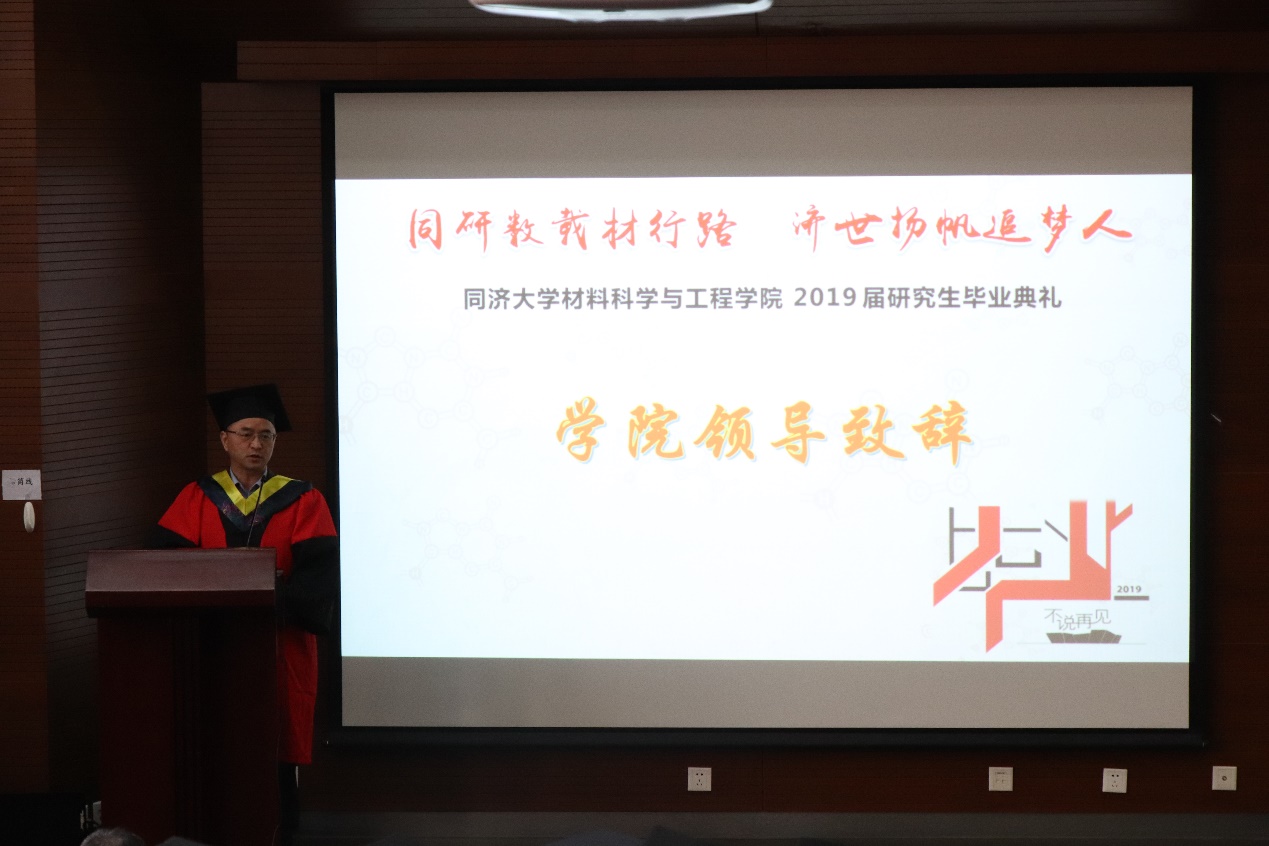 教师代表金明教授在睿智幽默的讲话中,表达了对学子们忠心的祝福,同学们要为自己感到骄傲,并对自己有充分的自信,最后还要懂得感恩。希望大家继续去探索这个庞大的世界,时刻保持着敏锐的感官对周围的一切变化做出感应,努力去用自己的专业技能来为我国乃至世界的发展做出贡献,回报社会,回报父母。同时,金老师真诚感谢了出席本次研究生毕业典礼的家长代表们,对家长们在研究生同学们成长成才的道路上付出的努力表示了由衷的敬佩与欣慰。金老师“如一篇论文般”的肺腑之言,意义深远,令同学们回味无穷。