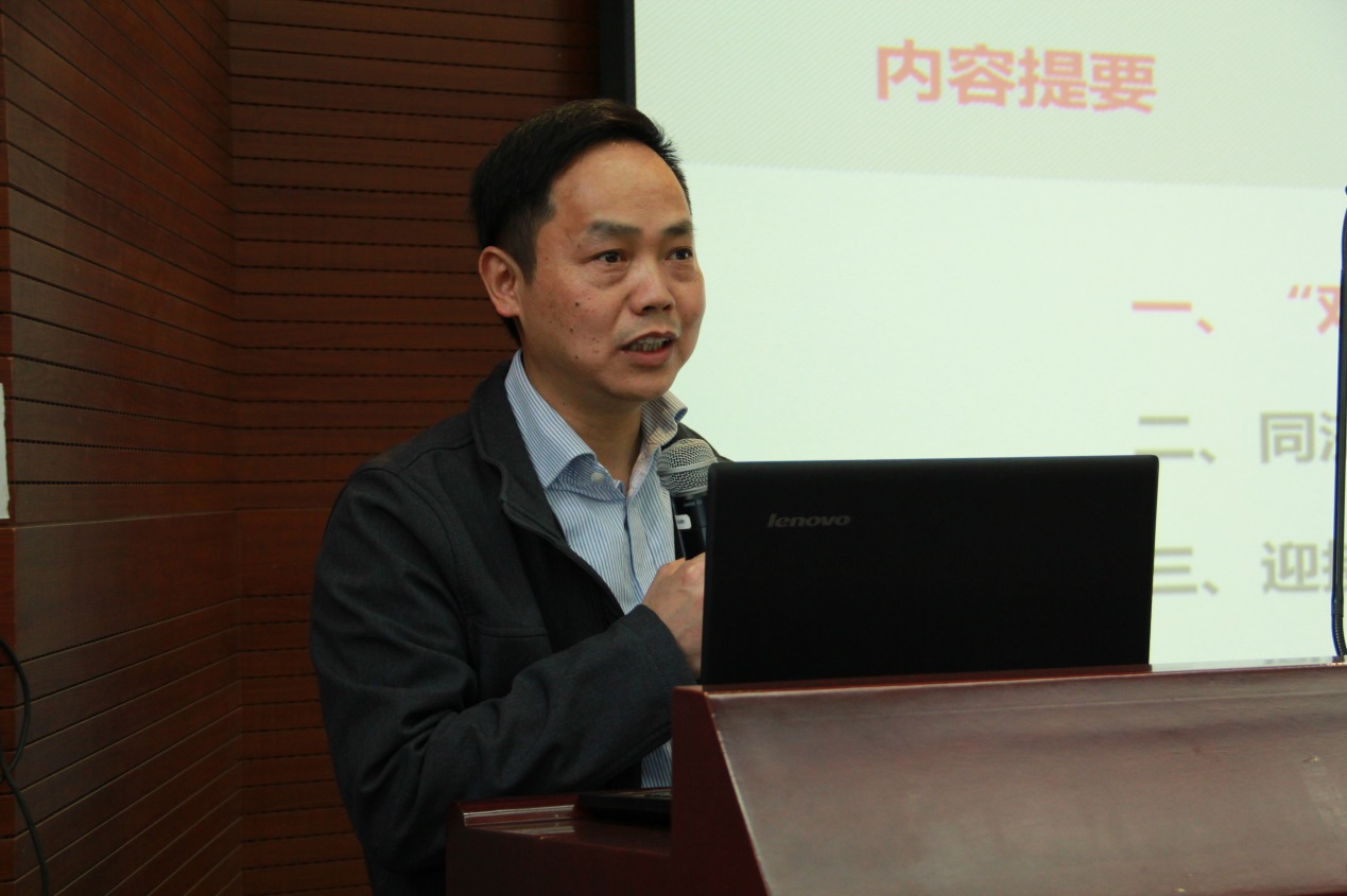 5月7日下午,公司2018-2019学年第二学期第三次全院大会在德才馆二楼报告厅召开,校发展规划部部长、高等教育研究所所长蔡三发受邀出席大会并作主题报告,公司党委书记王中平主持会议,公司党政领导班子成员、全院一百余名教职工出席会议。