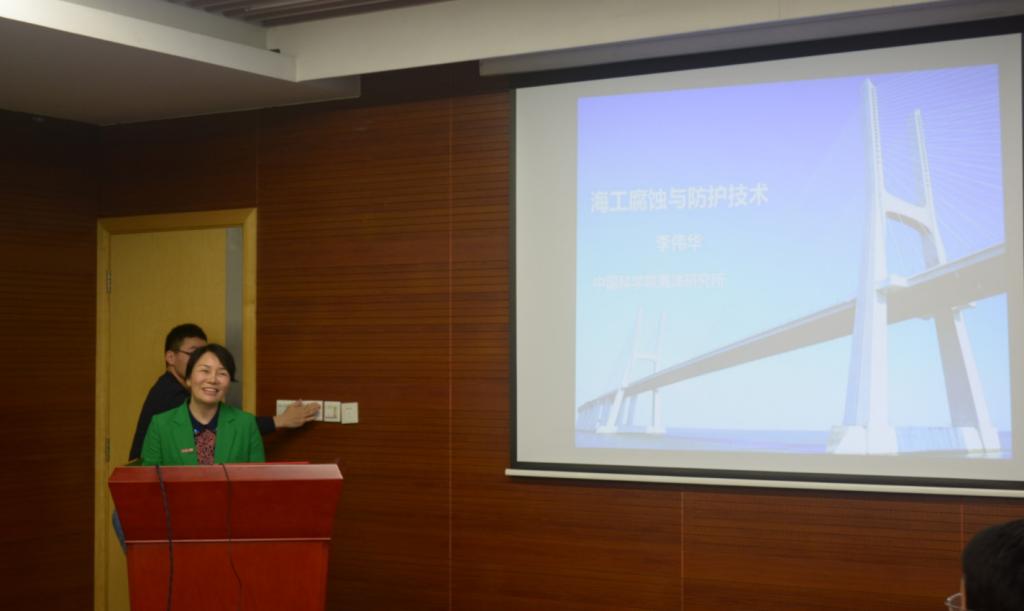 李伟华教授对公司的诚挚邀请表示感谢,介绍了自己目前的研究方向进展和未来展望,表示将竭尽所能在同济材料人才培养、项目合作等方面做出更大的贡献。她还为公司师生作了题为“海工腐蚀与防护技术”的精彩学术报告,并与参会师生进行了深入交流。