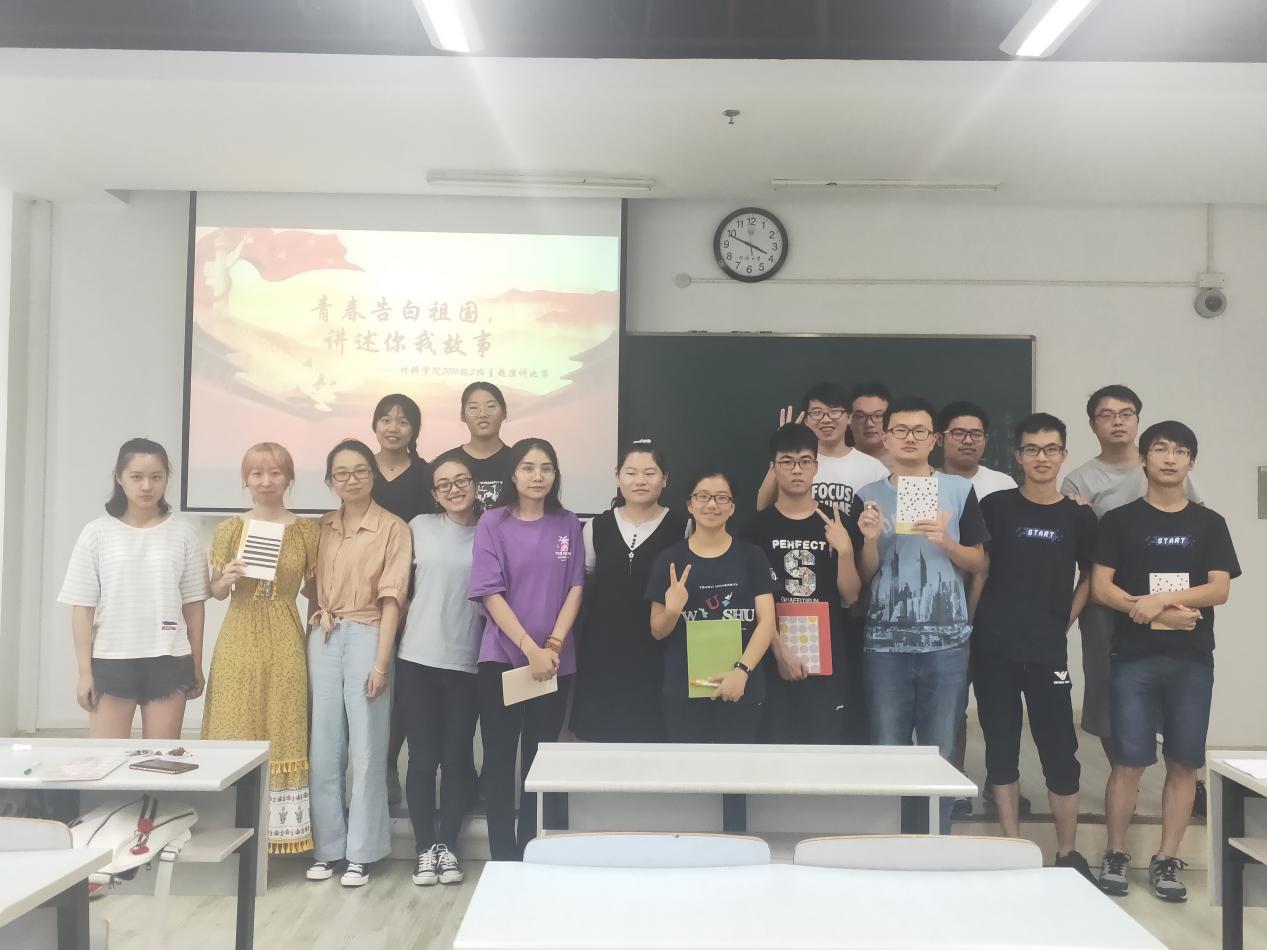 2019年9月6日,2016级本科材料2班团支部组织进行了“青春告白祖国”活动之“我向新时代中国告白”主题班会。同学们以改革开放以来家乡的千变万化、国家综合国力提高等为内容,向全体同学做了感悟分享,带领大家一起向祖国告白。