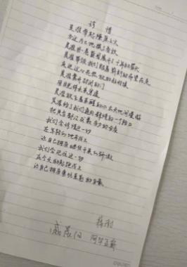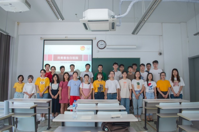 2019年9月10日下午,2019级高分子硕士班在诚楼211举行“青春告白祖国”之“歌颂亲爱的祖国,书写爱的赞歌”主题教育班会。班级中各个党员同学准备了一首赞美祖国的歌曲并且将其抄写下来,用声音表达对祖国真挚的赞美,将这种赞美诉诸笔端,用文笔书写祖国美好的未来。