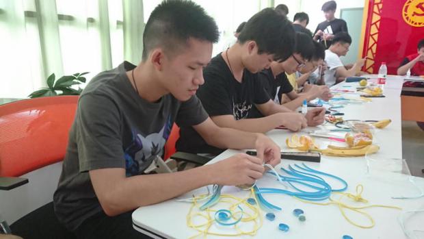 2019年9月10日下午,2017级本科材料2班团支部联合2017级本科材料3班团支部在九、十号楼活动室组织了以“青春告白祖国”为主题的创意手工制作活动。全班同学通过视频学习了中国结的制作方法,逐渐尝试动手编制中国结。同学们从最基本的方法开始,不断学习尝试复杂的方法,从最简单的单层,再到比较复杂的多层,从一根绳上编一个中国结到一根绳遍出两个、三个中国结。学习制作中国结,不仅是对同学们动手创新能力的一种培养,更是发扬传承中华传统文化,让祖国优秀文化进入每一个同学的生活。