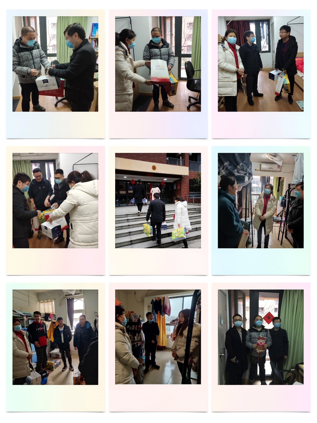 因疫情防控或科研任务需要,公司近90名同学选择了留校过年。继2月1日举办留校学子新春茶话会以后,公司于2月5日深入员工社区以及实验室,对留校员工进行了慰问。副书记王凌凌、副经理黄佳以及辅导员一行代表公司走访,关心员工的学习、生活和思想动态,为留校员工送上公司精心准备的大礼包以及新春问候。