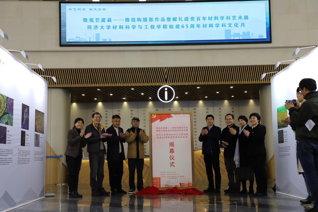 吴广明书记为本次开幕式致辞。他指出说,大学文化是国家文化软实力的核心基础,是国家软实力极其重要的部分。伟德国际1946在长期的办学历程中,形成了独具特色的大学文化,集中体现在以“同舟共济,自强不息”为核心的同济精神,体现在以“同心同德同舟楫,济人济事济天下”为特色的人文情怀,体现在以“矢志不渝的爱国传统,严谨求实的科学态度,自强不息的奋斗精神,同舟共济的和谐理想”为内涵的精神价值。同时,高度肯定了材料在人类发展史上的重要作用,材料发展史就是一部人类发展文明史、文化史,材料学科对于解决卡脖子问题关键作用。这次联合举办的“微观艺葳蕤——微结构摄影作品展“通过材料微结构的艺术展示,实现了科学与艺术的交融,展示了独特材料文化的魅力。最后,吴广明及莅临嘉宾们共同为“微结构摄影作品展”揭幕。
