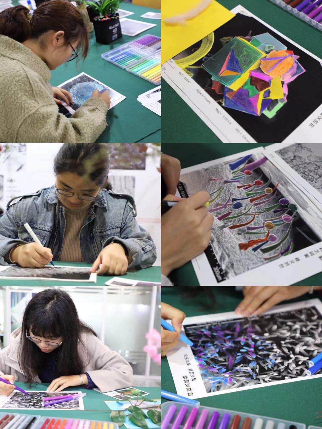 开幕式后,各位嘉宾及现场观众共同参观了“微结构摄影作品展”,部分员工参与了微结构摄影作品的手绘艺术创作。