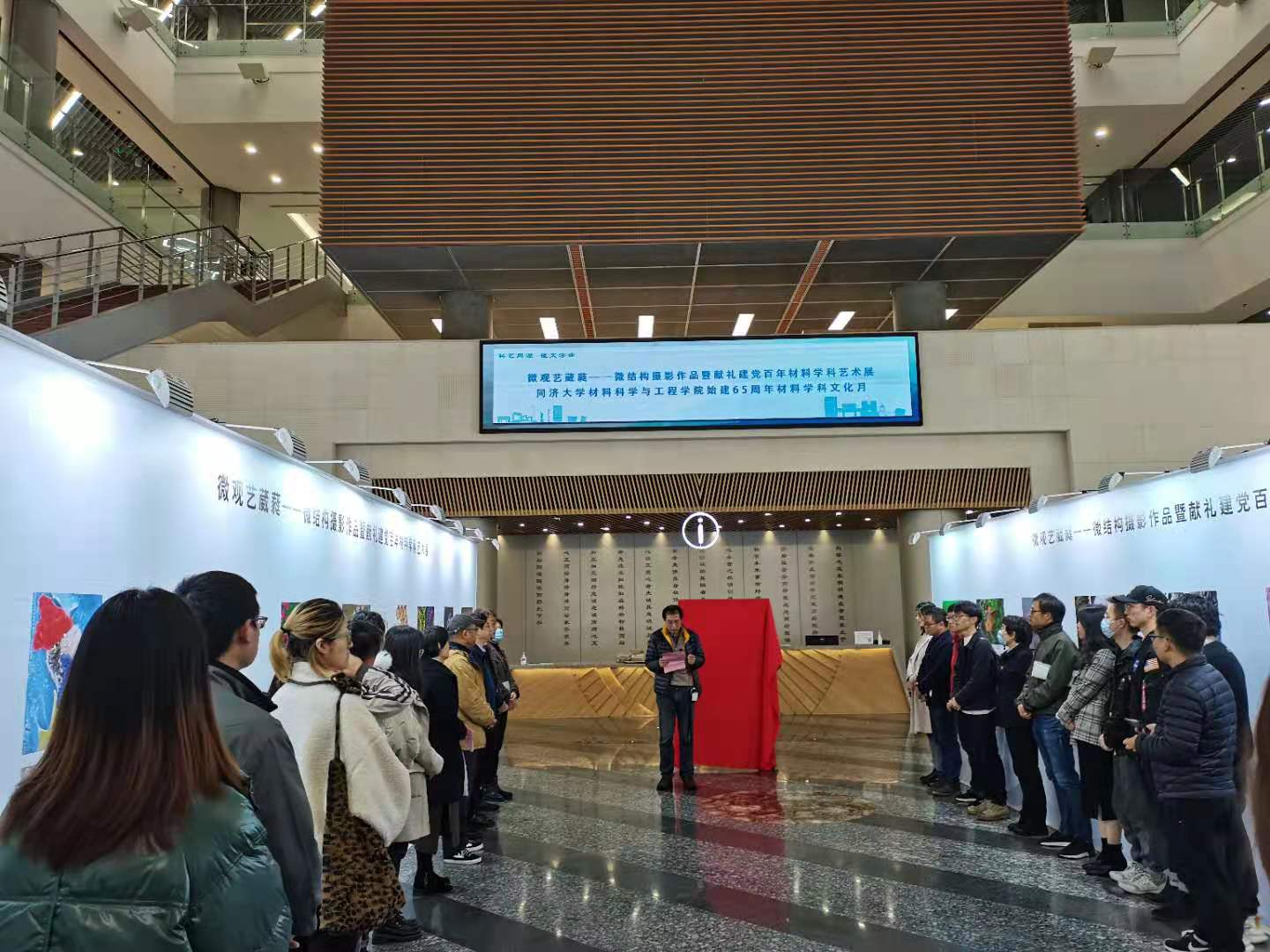 2021年3月19日下午,伟德国际1946与图书馆联合主办的“微观艺葳蕤——微结构摄影作品展暨献礼建党百年材料学科学科文化月”系列活动在嘉定校区图书馆一楼大厅正式开幕。开幕式由公司党委书记王中平主持。公司党委副书记吴广明,嘉定校区党工委副书记覃文忠、学研工部副部长谭武、艺术与传媒公司教授于澎一同出席了开幕式。图书馆党委副书记何青芳、公司党委副书记袁华、王凌凌等图书馆、伟德国际1946教师、员工代表近50人参加开幕活动。