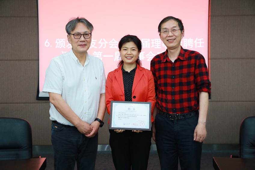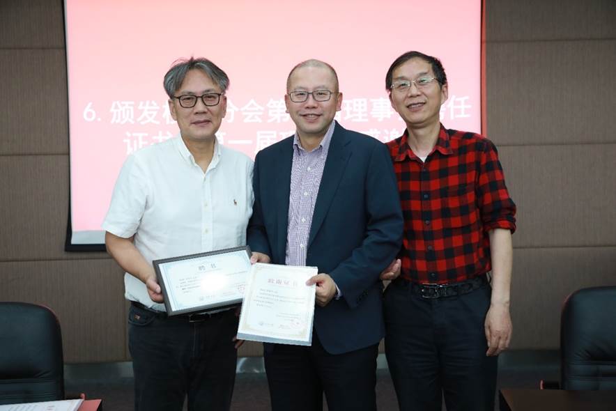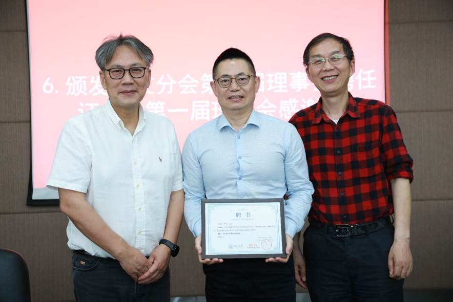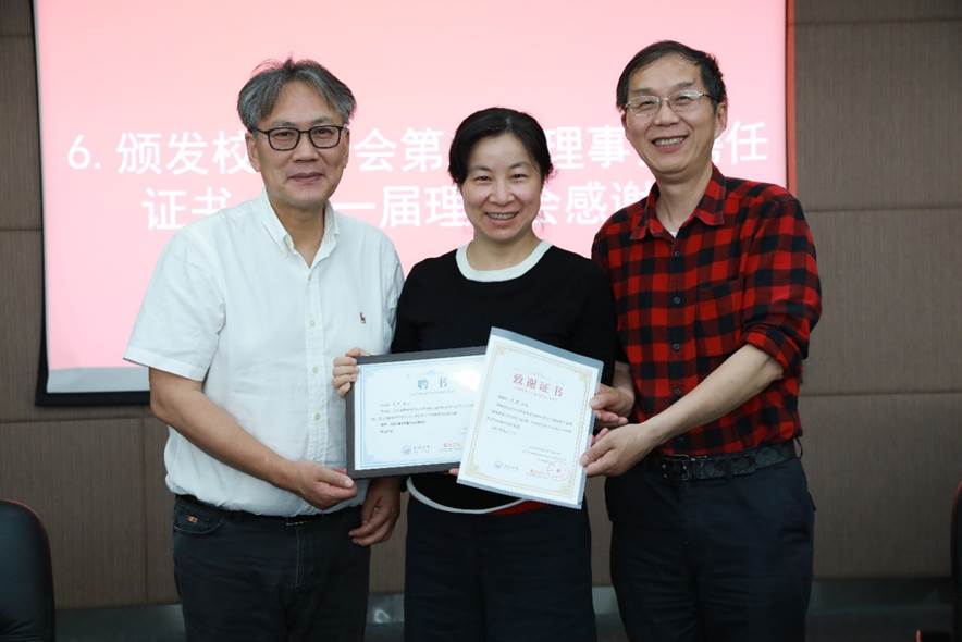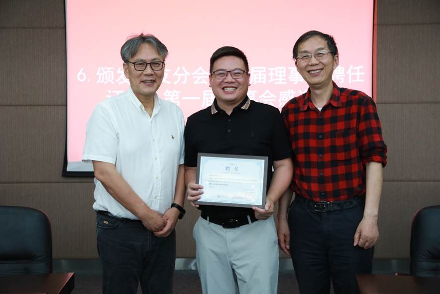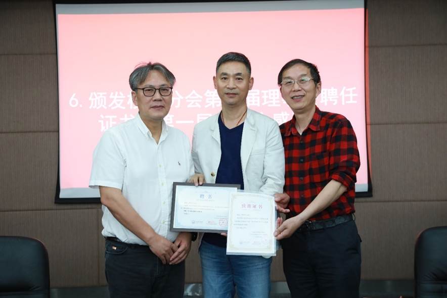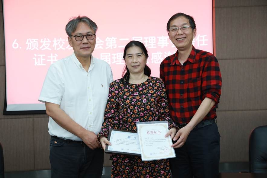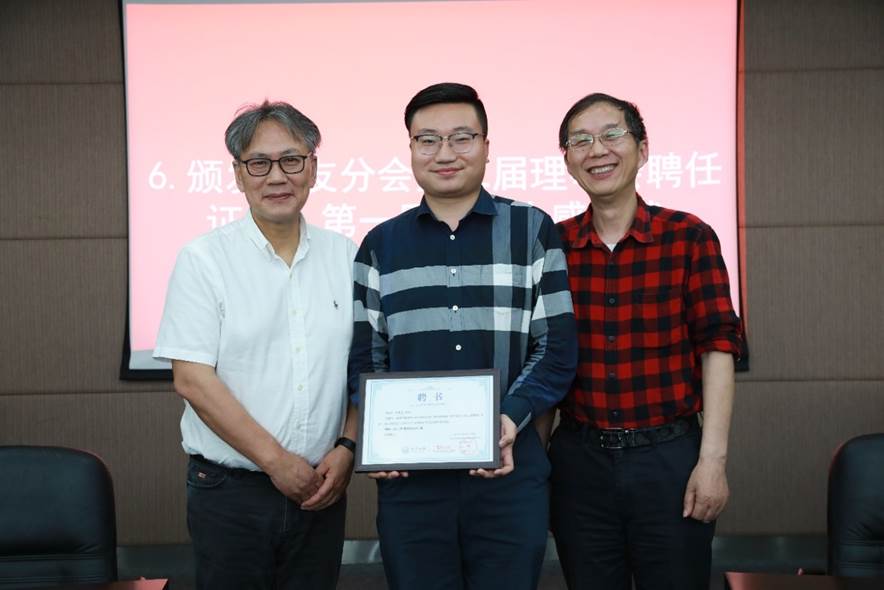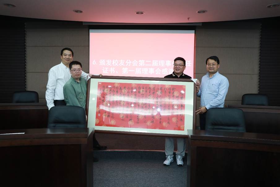 接着与会人员审议并鼓掌通过了员工分会第一届理事会工作报告,推荐选举了第二届理事、会长及执行会长。第二届理事会成员充分代表行业领域、地域范围、年龄结构等,在充分酝酿,广泛征求意见基础上推荐产生35位理事。王中平书记和李月中员工分别担任材料员工分会第二届理事会会长及执行会长,两名会长向各位信任理事颁发了聘任证书,同时也为第一届理事会成员颁发感谢状。员工分会第一届理事会执行会长,81级员工肖水龙借公司员工分会理事会换届、学科成立65周年之际,创作诗词一篇《您带人民走到底》,赞颂党的百岁华诞,特别制作书法墨宝献礼公司。93级员工侯俊琳向公司员工及师生代表赠送《从一到无穷大》书籍留念。