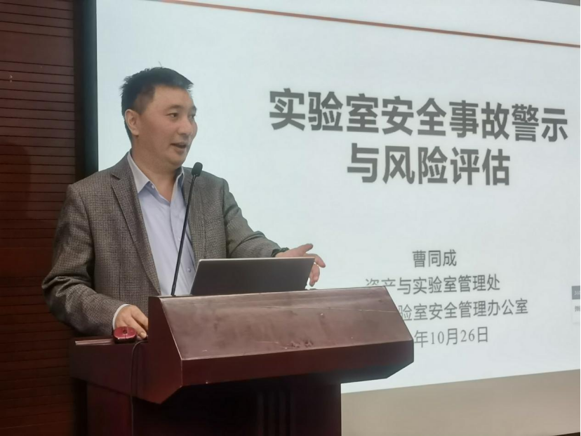 校资产处副处长曹同成作题为《实验室安全事故警示与风险评估》的报告,从《教育部关于加强高校实验室安全工作的意见》、安全事故警示、风险评估体系三个方面深入浅出向公司教师做了宣讲。他强调:实验室安全一定要坚持“预防为主”理念,面对安全生产我们不能寄希望于事后补救,更重要的事前预防,公司导师要加强员工实验室安全教育,培养安全意识,将安全融入培养员工全过程,针对课题组实验特点,做好安全风险评估,为员工提供安全整洁的学习科研环节。