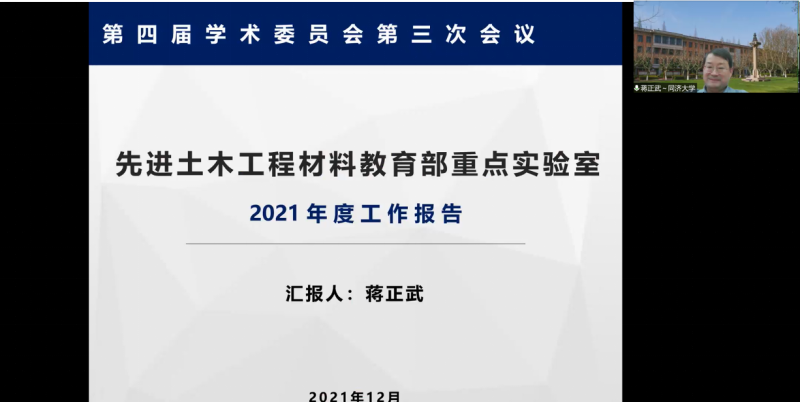 童小华副董事长代表公司向各位专家委员克服疫情影响,拨冗在线对今年重点实验室工作进行指导表示感谢,并向与会专家介绍了伟德国际1946双一流团队建设,尤其是围绕材料领域开展学科交叉研究、服务重大工建设方面所取得成绩,代表公司向各位长期以来对同济工作的支持表示诚挚的谢意。实验室主任蒋正武教授汇报了2021年度四大方向主要研究进展、人才培养、平台建设、管理运行等方面取得主要成绩,并就实验室存在的问题和改进措施进行了汇报。会议评审了本年度的实验室开放基金。委员们对重点实验室过去一年开展的工作和取得的成绩给予了积极评价,并就实验室紧紧围绕四个面向开展顶层设计、进一步凝练研究研究方向,聚焦开展高水平、创新性的应用基础研究等进行了热烈的讨论,为实验室下一阶段工作指明了方向。
