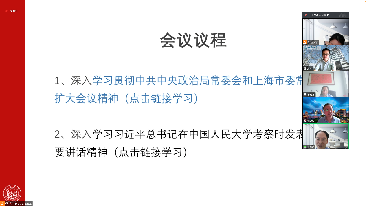 会议指出,习近平总书记主持召开中央政治局常务委员会会议并发表重要讲话,分析当前新冠肺炎疫情防控形势,研究部署抓紧抓实疫情防控重点工作,师生要认真学习领会,坚决贯彻落实,切实把思想和行动统一到习近平总书记重要讲话精神和党中央决策部署上来,增强“四个意识”、坚定“四个自信”、坚决做到“两个维护”。要毫不动摇坚持“动态清零”总方针,坚定必胜信心,在以习近平同志为核心的党中央坚强领导下,在上海市委的统筹领导下,全校上下团结一心,同舟共济,一定能够打赢校园疫情防控的大仗硬仗和大上海保卫战。