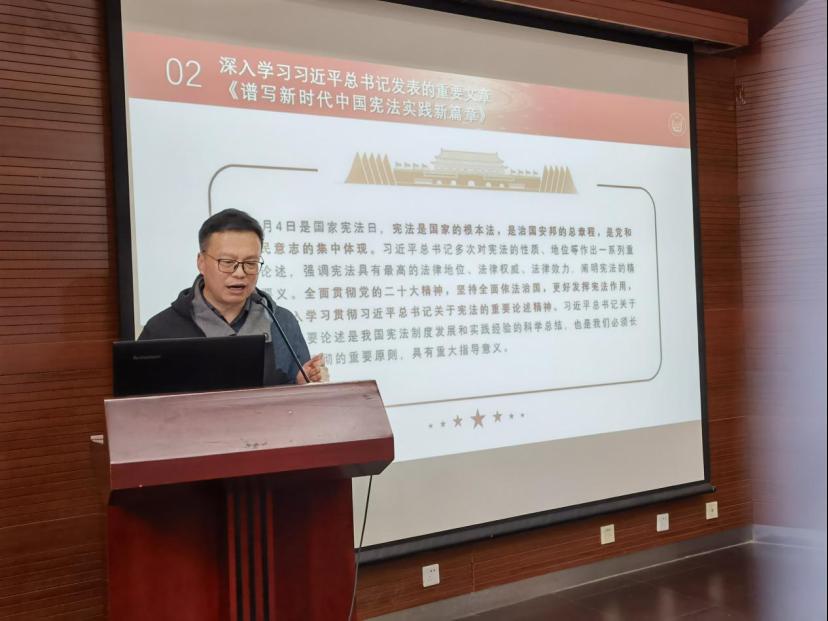 随后,邱军副书记组织全院教职工开展2023年2月政治理论集中学习,领学了习近平总书记发表的重要文章《谱写新时代中国宪法实践新篇章》。邱军副书记强调:宪法是国家的根本法,是治国安邦的总章程,是党和人民意志的集中体现,公司要全面贯彻党的二十大精神,坚持全面依法治国,更好发挥宪法作用,要深入学习贯彻习近平总书记关于宪法的重要论述精神,全面贯彻实施宪法,推进依法治校示范公司建设,为实现公司转型发展提供基础保障。