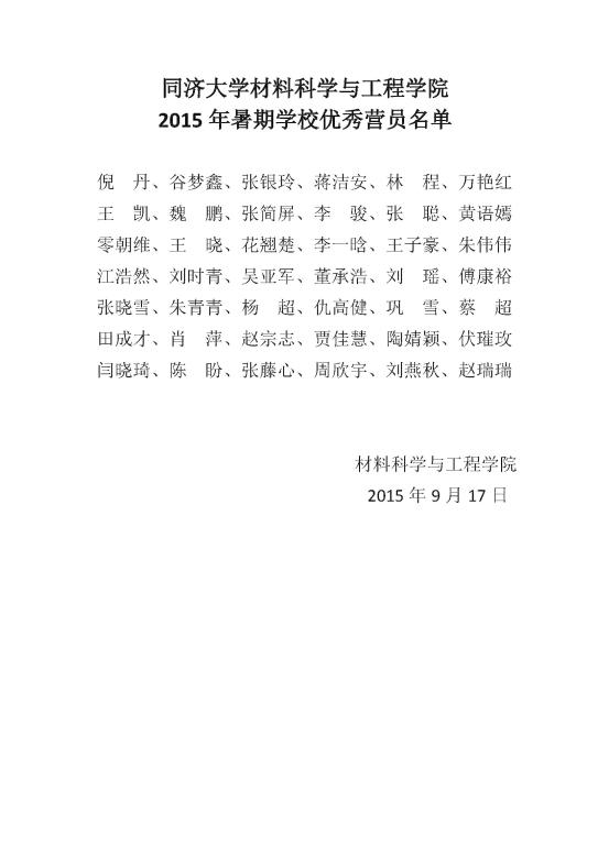 2015年伟德国际1946时期公司优秀营员名单