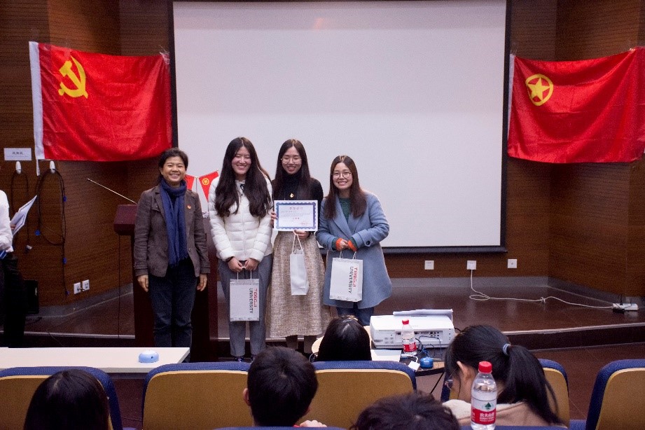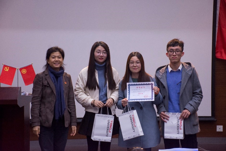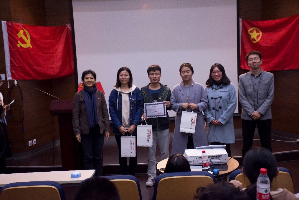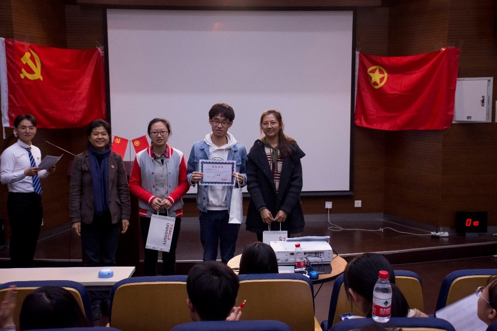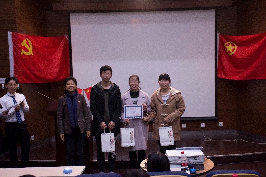 临近尾声,党委副书记王凌凌老师代表发言,她首先肯定了此次知识竞赛的重要意义和员工组织举办方的工作成果,并提出“竞赛已经落幕,学习却仍是进行时,赛后同学们可以通过建群资源分享或增加党支部团支部之间的联合交流学习,进一步学习党的最新理论知识”;另外,王老师以改革开放四十年来自己所感受到的切身体会,鼓励新一代员工党员不断夯实专业基础,将来为祖国的建设富强做出作为“同济人、材料人”应有的贡献。