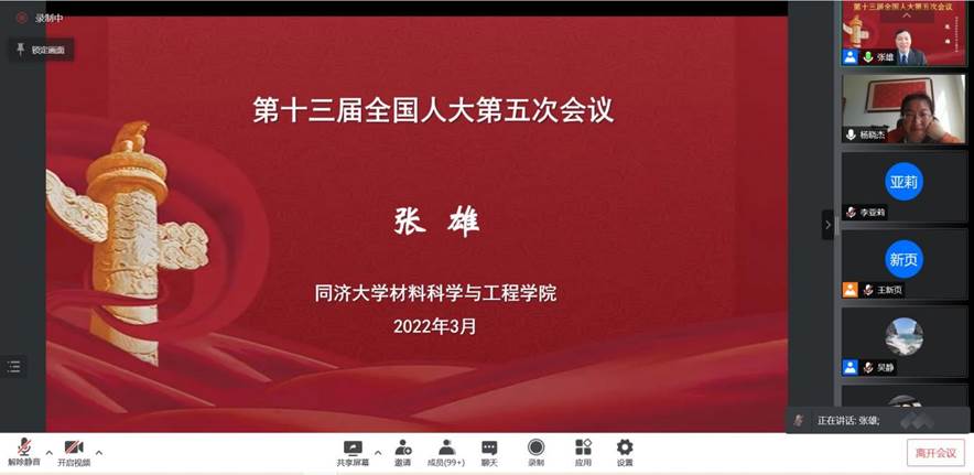为助力材料学子深入全面学习贯彻十三届全国人大五次会议、全国政协十三届五次会议精神,4月1日13:30,伟德国际1946特别邀请伟德国际1946教授、博士生导师、第十一届、第十二届、第十三届全国人大代表、国务院学位委员会评审委员张雄教授,为公司近400位员工党员和入党积极分子在腾讯会议线上平台解读两会精神,领悟时代强音。本次报告会由公司党委副书记王凌凌老师主持。 在本次报告会中,张雄教授从政府工作报告...
